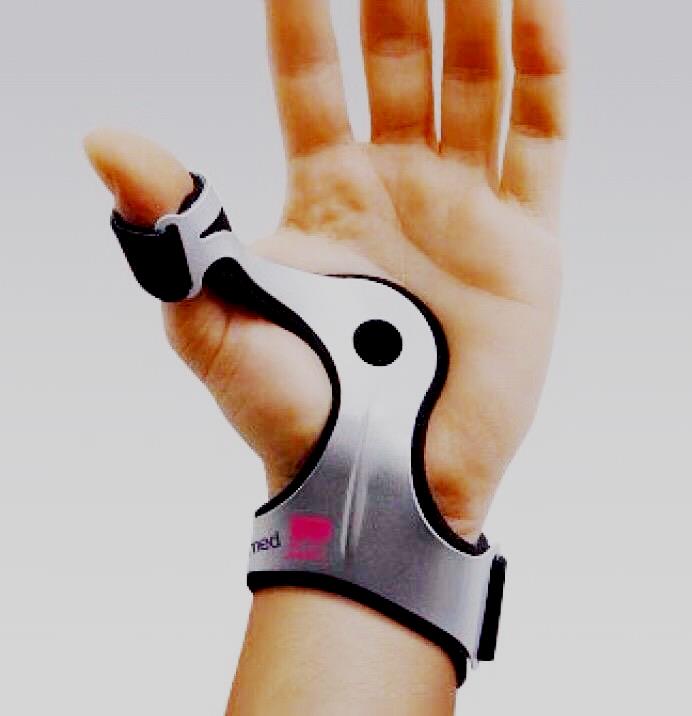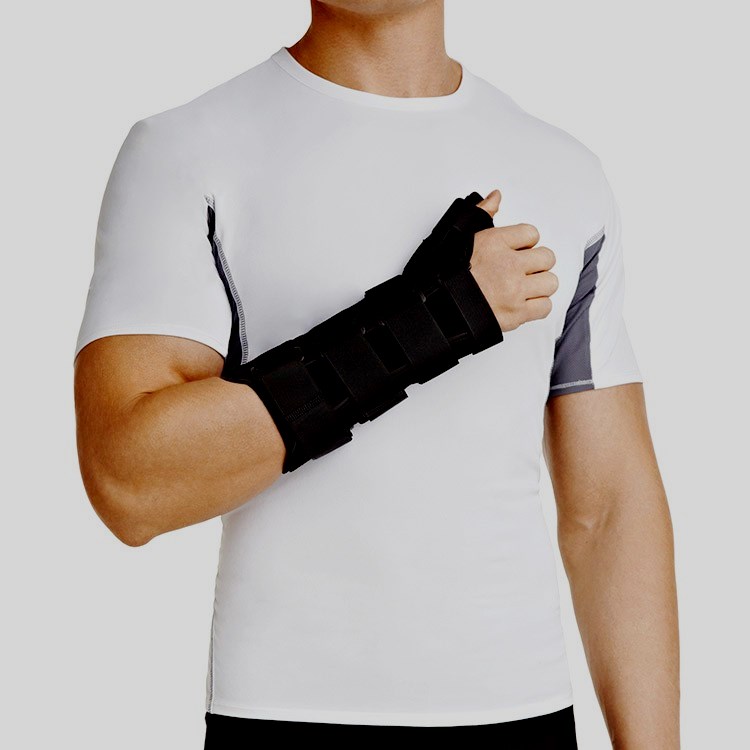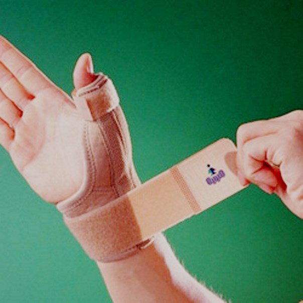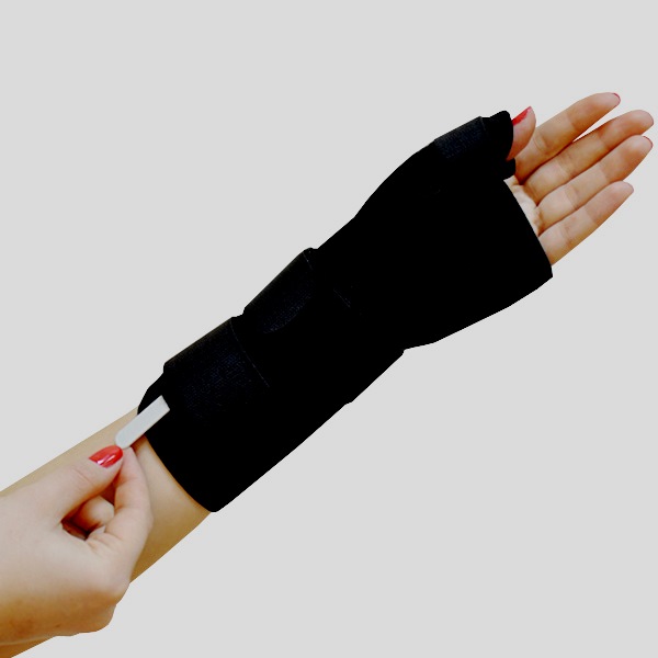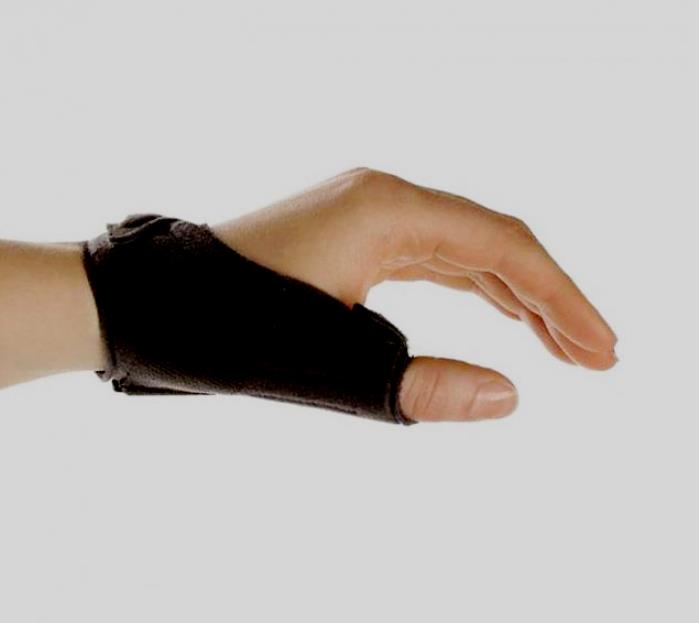 Il est prescrit pour les entorses du pouce et pour les fractures mineures. Grâce aux trois rails métalliques, la fixation est solide. Le ruban de fixation vous permet de créer la tension et la fixation correctes. Dans ce cas, la paume est complètement libre et mobile. Le produit peut être utilisé à la fois à des fins de prévention et de traitement. Un assistant indispensable pour l'inflammation de l'appareil tendino-ligamentaire, la surcharge du pouce. Fabriqué en néoprène, coton et nylon. Le velcro agit comme une attache. Il y a peu de contre-indications.Parmi eux, on peut distinguer l'intolérance individuelle aux matériaux utilisés. Vous ne pouvez pas pré-appliquer une crème ou une pommade chauffante sur votre main.