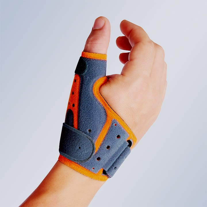 Un produit avec une fixation semi-rigide. Dans la fabrication du pneu, on utilise de l'aluminium ductile et un matériau perforé à trois couches, qui sont respirants. Appartient à la catégorie des universels. Convient à toutes les mains. Il peut être modélisé en fonction des caractéristiques de la main du patient.Le bracelet est en velours. Fermeture - Velcro. Il y a aussi un crochet pour la sécurité. La couche intérieure est en coton doux et sans couture. N'irrite pas la peau, ne frotte pas, ne provoque pas de réactions allergiques. Conçu pour réduire la douleur et restaurer rapidement la zone endommagée. Il est indiqué dans les tendinites, complications tumorales et douloureuses, irritations et instabilités des articulations métacarpiennes trapèzes. Souvent utilisé par les athlètes lors de blessures professionnelles. Fixe parfaitement le premier doigt de la main avec une attelle en métal.