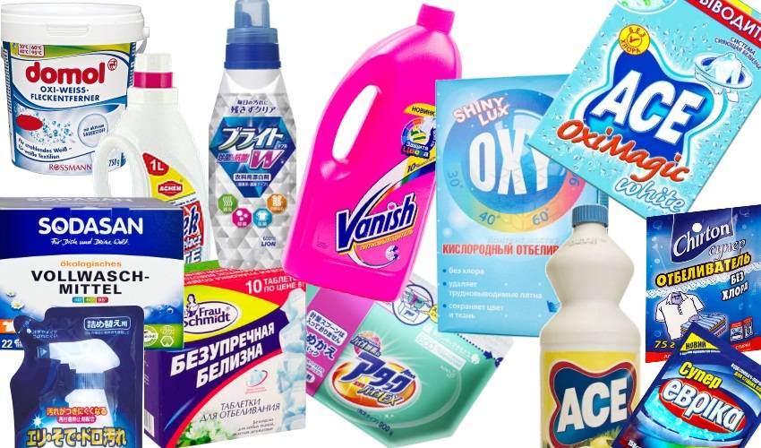 Les agents de blanchiment à l'oxygène sont plus chers, mais ils sont populaires parmi les femmes au foyer, ils leur font gagner du temps sur le blanchiment des choses, leur utilisation ne nécessite pas de trempage ni d'ébullition supplémentaires. Sur les étagères des magasins ménagers, de tels agents de blanchiment peuvent être trouvés sous forme de poudre ou sous forme de liquide concentré. Ces produits peuvent être combinés avec d'autres détergents.