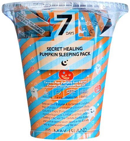 Le masque de nuit à l'extrait de citrouille agit activement toute la nuit, tonifie, hydrate et blanchit la peau du visage. Le matin, vous devez vous laver à l'eau tiède. Le poids d'un paquet est de 5 grammes, 12 pièces sont incluses. Ce montant est suffisant pour le cours. Coût moyen : 680 roubles.