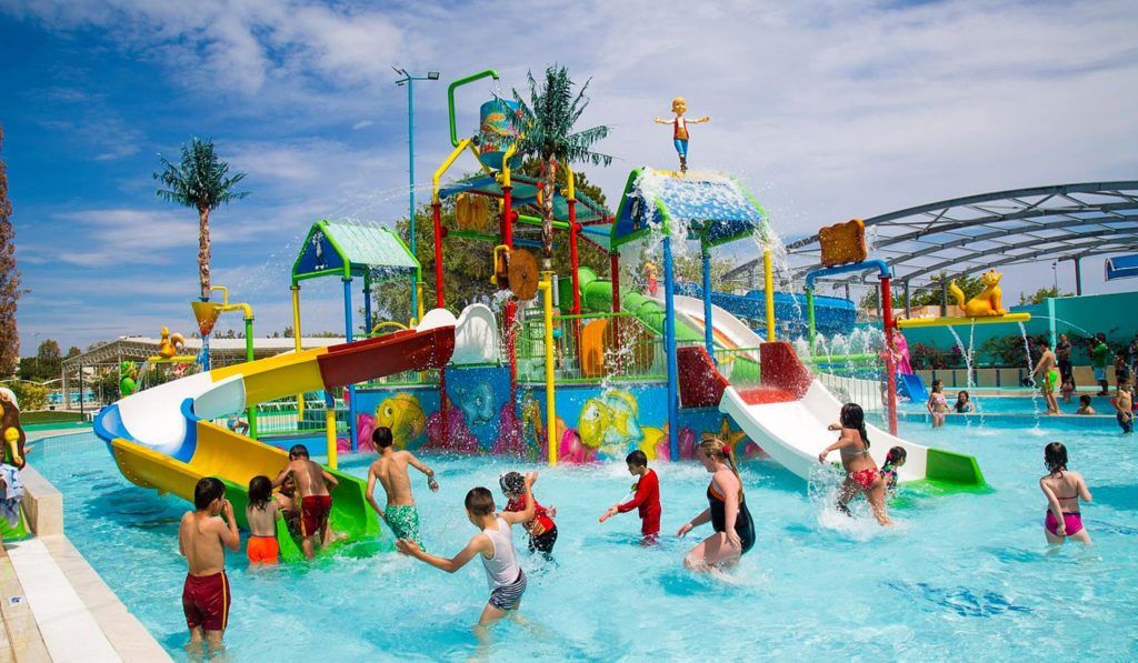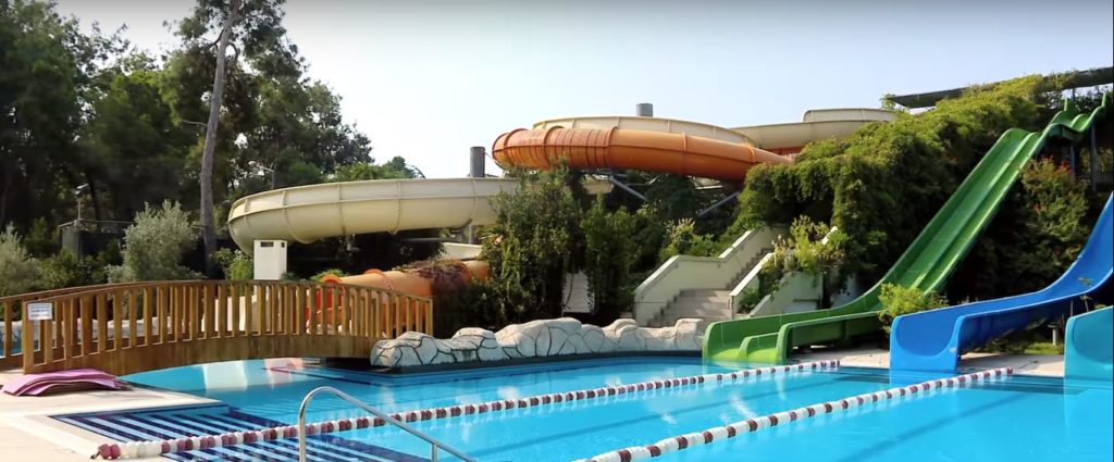 La plage est petite, il y a un parc aquatique avec des attractions aquatiques, des toboggans pour les enfants.
