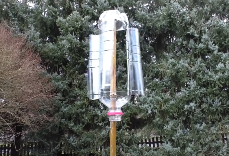 Principe de fonctionnement : la goupille est installée au milieu du passage creusé. Lorsque le vent souffle, la bouteille tourne et crée un champ de vibration.
