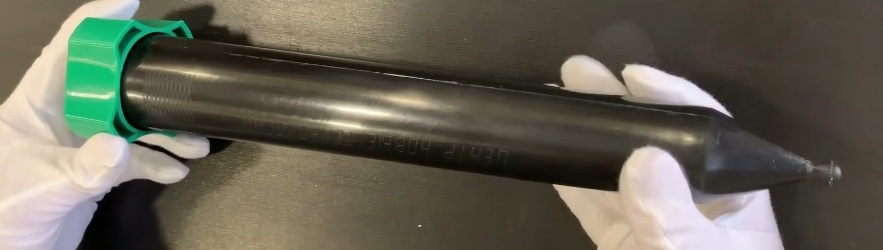 L'apparence de l'appareil ressemble à un énorme crayon aiguisé.Le corps est noir, le chapeau-valve est vert. L'étui est durable, hydrofuge, vous permet de réaliser des activités dans toutes les conditions météorologiques, à l'exception des températures négatives. Repousse tous les parasites vivant sous terre.