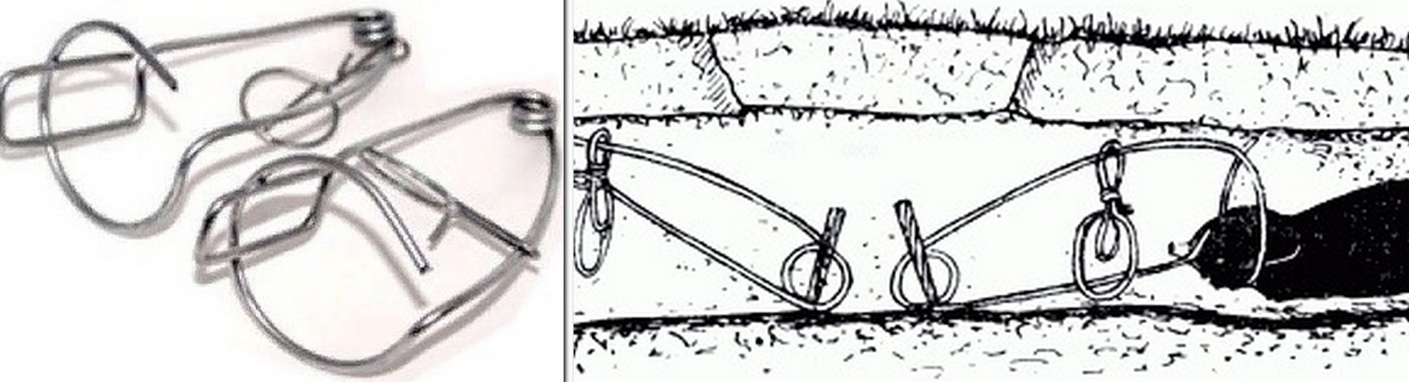Livré par paires à vendre. Le mécanisme est simple : fil d'acier torsadé selon une certaine forme. Un mécanisme spécial reprend le principe de la souricière, mais en mode plus doux.