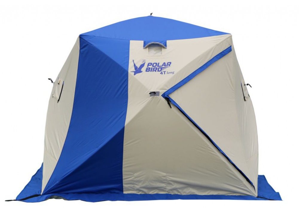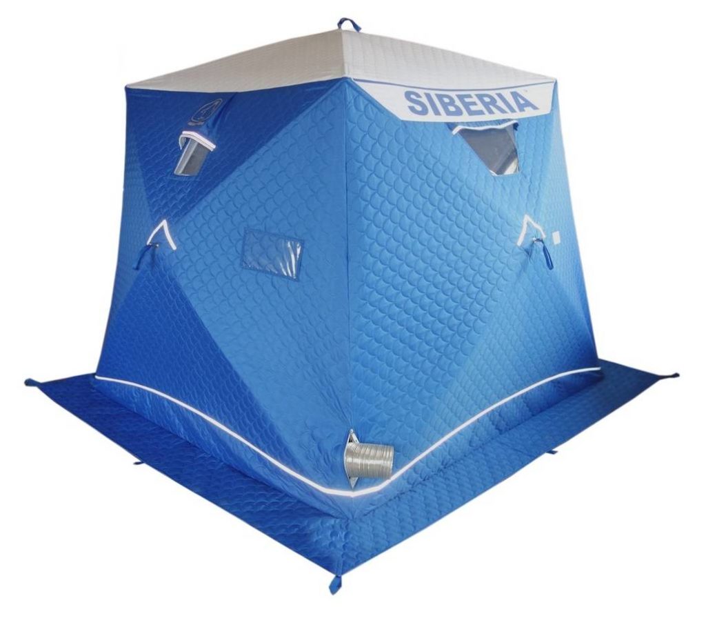 Tente à trois couches de forme non standard avec isolation, dont la capacité est jusqu'à quatre personnes en même temps. À l'intérieur, il y a des étagères, des poches, des fenêtres amovibles résistantes au gel en deux parties, des trous de ventilation (leur emplacement crée des conditions idéales pour l'échange de chaleur). Les tambours ne sont pas fournis.