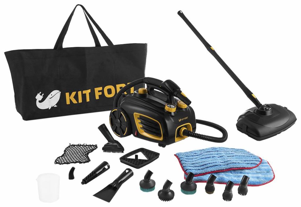 Le poids de l'appareil est de 7 kg, à l'aide d'une plate-forme stable, le modèle est installé sur le sol. La poignée confortable convient au traitement non seulement en position verticale, mais également au sol.Le réservoir de liquide peut contenir jusqu'à 1,5 litre. C'est suffisant pour nettoyer un appartement moyen. L'appareil comprend des buses spéciales pour différents types de matériaux traités. Toutes les buses sont placées dans le compartiment du boîtier.