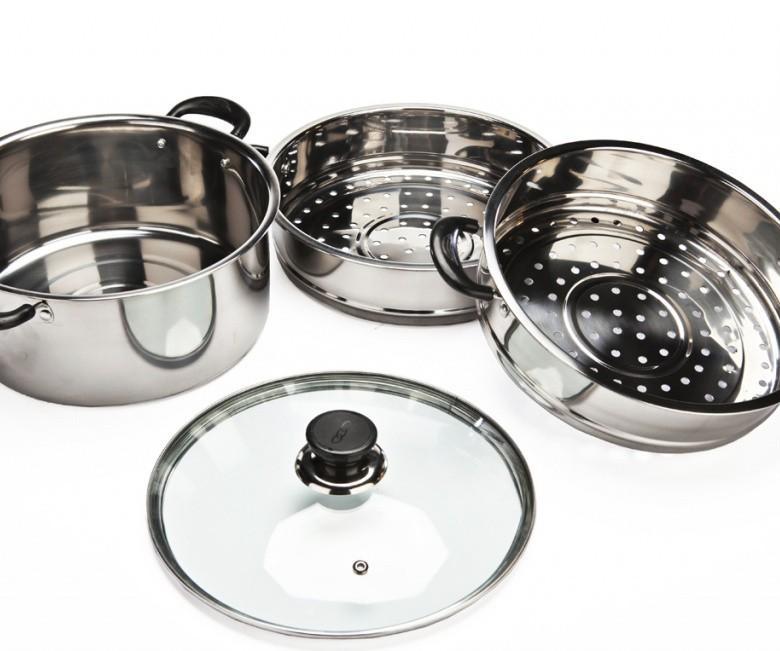 Les caractéristiques de conception du cuiseur vapeur permettent à la vapeur de circuler librement dans tout l'espace intérieur. Le modèle est économique, mais ressemble à une batterie de cuisine haut de gamme grâce au corps poli.