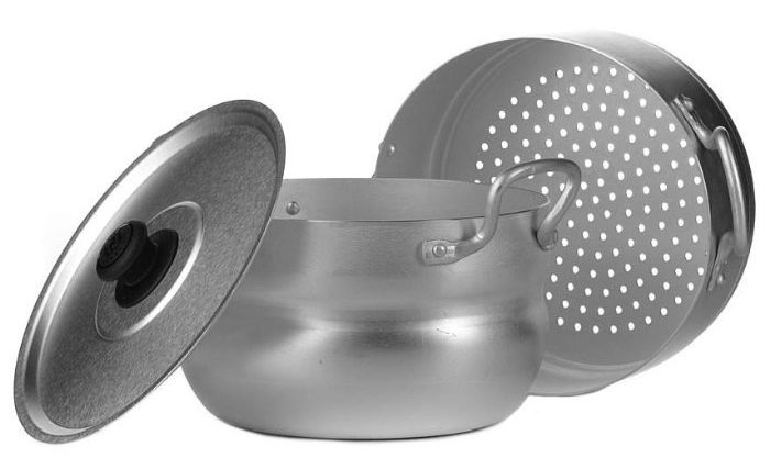 Fabriqué en acier au carbone. Il y a deux niveaux et un plateau. Son volume total est de 8 litres. Les poignées ne chauffent pas, ce qui est un autre avantage. En retirant le bain-marie du feu, l'hôtesse n'a pas à utiliser de gants de cuisine.