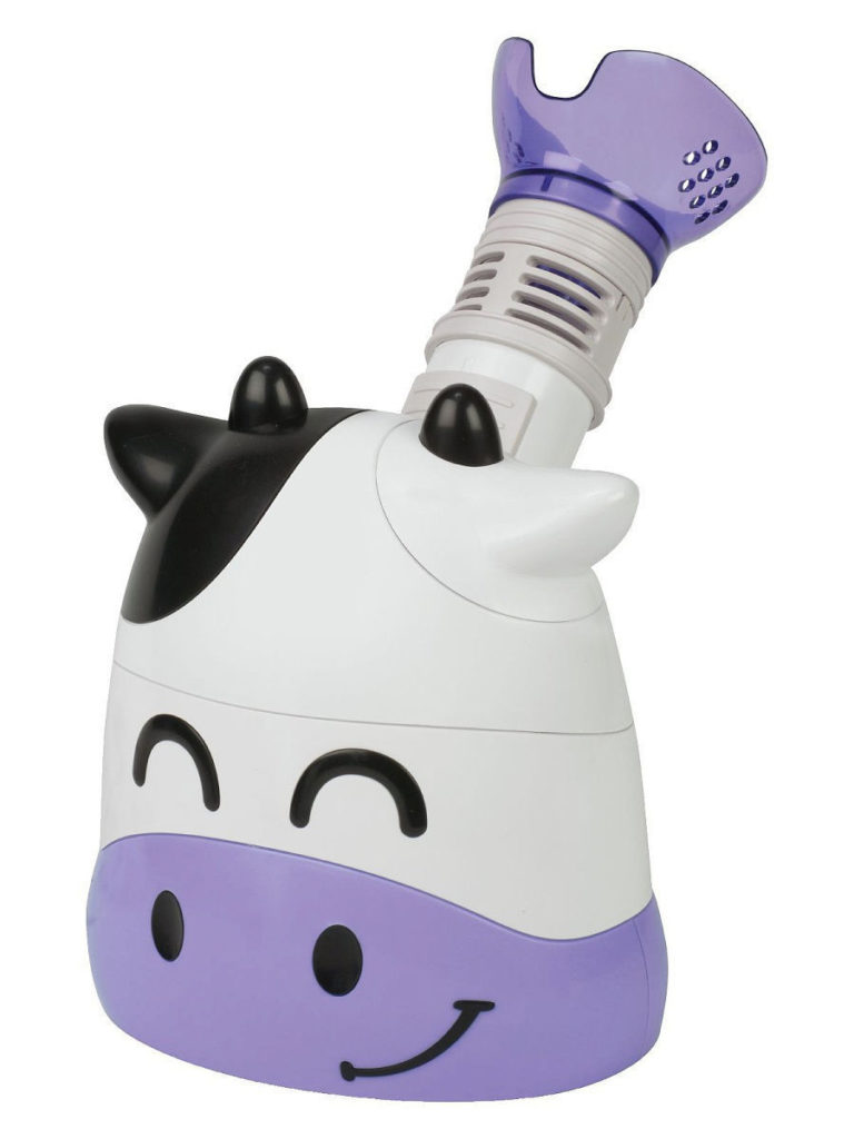 Un design lumineux en forme de vache aide les petits utilisateurs à ne pas avoir peur de l'appareil. Convient également aux adultes. Pour chaque type d'inhalation (par la bouche ou par le nez), vous pouvez régler le réglage souhaité de la taille des particules de la vapeur. Pour obtenir l'effet, la durée des inhalations n'est que de 6 à 9 minutes.