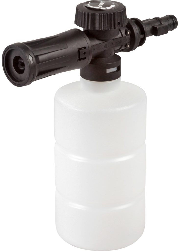 L'appareil est l'un des plus compacts et des moins chers. Malgré sa petite taille, le générateur de mousse fait facilement face aux tâches. Le moteur électrique et la pompe en aluminium rendent l'appareil populaire parmi les utilisateurs. Pour le fonctionnement, il suffit de connecter le modèle à l'alimentation en eau.Les utilisateurs notent également la présence de la fonction d'auto-prélèvement d'eau. L'appareil est utilisé en conjonction avec des nettoyeurs haute pression. Utilisé pour laver les voitures et les outils de jardin.La capacité est de 0,5 litre.