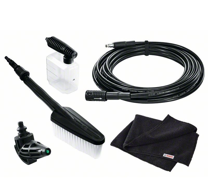 La longueur du tuyau est de 10 mètres, cette taille est suffisante pour laver la voiture de tous les côtés.Un indicateur spécial vous permet de suivre la quantité de détergent dans le flacon.