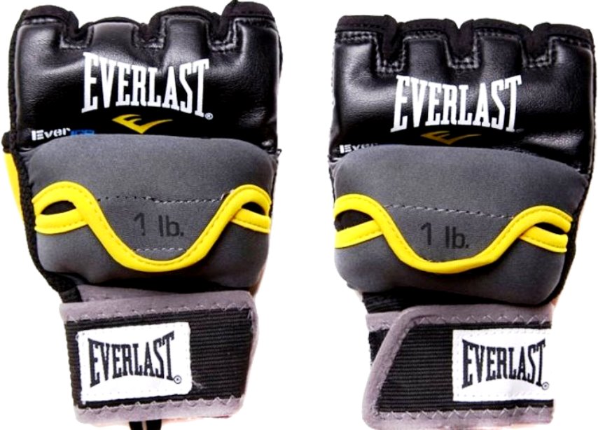 Marque de produit Weighted Gel Everlast Velcro pesant un demi-kilogramme. Grille dimensionnelle : S/M et L/XL. Les bandes à pression permettent d'ajuster le produit à n'importe quelle main et offrent un ajustement parfait autour du poignet. Une poche spéciale est prévue sur la face arrière, où se trouve un poids amovible de 450 g.Un bon modèle pour pratiquer les frappes avec un adversaire fictif. C'est beaucoup plus confortable que les haltères ou les poids de bande. Peut être utilisé pendant le jogging.