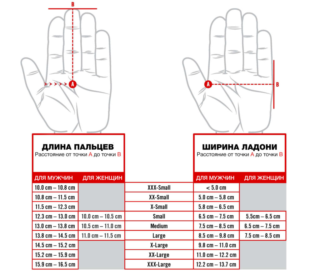 Maintenant, à propos de la taille - de bons gants doivent être bien ajustés à la main, mais ne pas serrer les doigts. Le test le plus simple consiste à enfiler un gant et à serrer le poing. Si rien n'interfère, alors la taille est correcte.