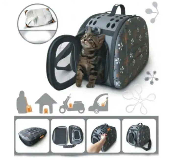 Le modèle de cage pliante pour chats et chats a des dimensions de 46x32x30 cm.Le prix moyen de ce modèle sur Internet est de 4450 roubles. Les sacs ont une forme similaire aux sacs en tissu standard, mais ont de solides renforts en EVA dans la coque extérieure et se replient dans un étui plat après utilisation.