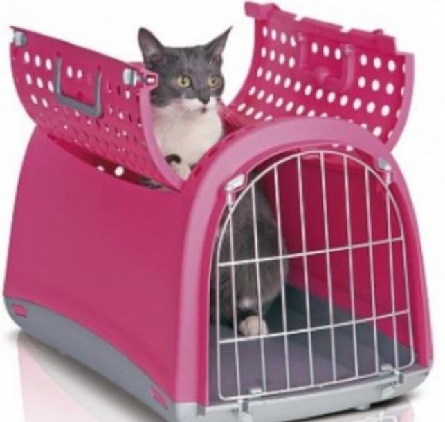 Le modèle en plastique de la cage de transport pour chat SAVIC Retro TROTTER 1, de couleur rose délicate, coûte 1500 roubles et est parfaitement applicable lors de déplacements en voiture et en train. Dans un tel transporteur, l'animal se sentira à l'aise lors de voyages chez le vétérinaire ou de voyages à la campagne.