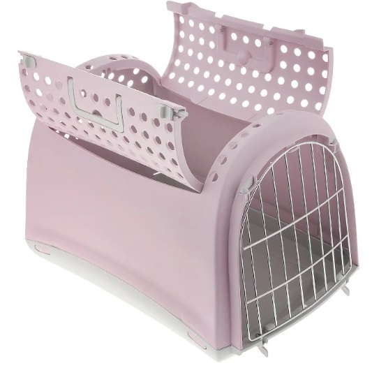 Cette option pour le transport d'animaux provient également d'un fabricant italien. Une caractéristique de ce modèle est la possibilité d'ouvrir le dessus, mais il y a aussi une porte en métal. Si l'animal ne veut pas entrer dans le conteneur par la porte, vous pouvez simplement ouvrir le dessus et l'asseoir facilement. La porte en métal est réalisée sous la forme d'un treillis et est fermée par des clips. La mallette et une housse de transport sont en plastique de qualité. Les parois latérales n'ont pas de trous, mais il y a des trous ronds sur le toit qui, avec la porte, fournissent un flux d'air suffisant. Vous pouvez également retirer la grille métallique et transformer le transporteur en niche pour animaux de compagnie.