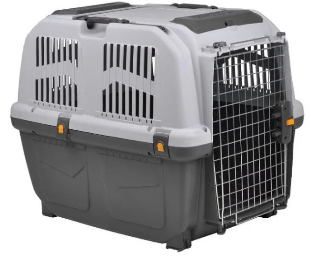 "MPS Skudo 6" est destiné au transport de chiens de races moyennes et grandes. Le support est fabriqué en plastique de haute qualité à haute résistance. La porte est faite sous la forme d'un treillis. Se ferme avec des loquets pivotants. Il convient également de noter que le corps et la porte sont fixés à la base avec la puissance d'éléments encliquetables fiables. Il y a une poignée rétractable pour une portabilité facile et des roues sont disponibles en option. En l'absence de roues, leurs bases peuvent servir de pieds, cela assurera la stabilité et évitera d'endommager la base. La partie supérieure des panneaux latéraux présente des ouvertures suffisamment grandes pour offrir des conditions optimales de circulation de l'air.Et en bas, il y a deux compartiments où vous pouvez mettre des documents.