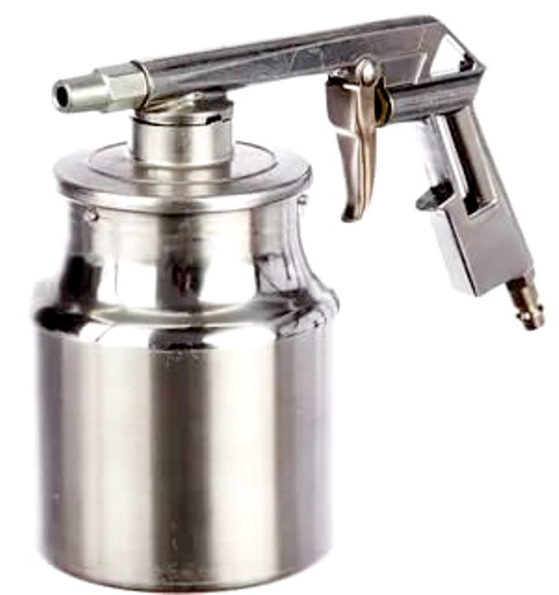 Il se distingue par l'absence de réservoir pour abrasif et son faible poids - 1,2 kg. Le pistolet est en métal de haute qualité, qui ne craint pas les dommages mécaniques. Temps de fonctionnement continu - de 8 à 12 heures (maximum). Équipé d'un réservoir standard, mais le sable peut également être prélevé dans un seau. Gère le nettoyage de la carrosserie de la voiture rapidement et efficacement.