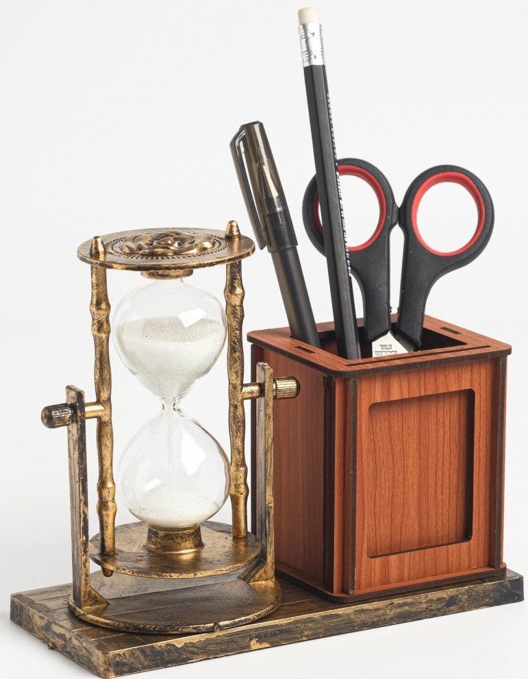 Un sablier est un mécanisme simple pour mesurer le temps en versant du sable à l'intérieur d'un flacon. Ils ont moins de précision que les appareils électroniques et sont utilisés comme éléments décoratifs d'intérieur.