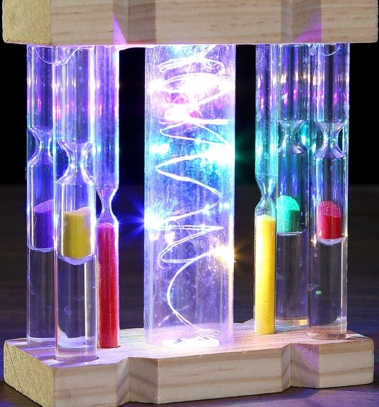 Le boîtier est en verre résistant aux chocs, ils remplissent une fonction décorative, l'intervalle de temps n'est pas précis. Poids : 1,2 kg. Dimensions : 36,5x13 cm Garantie constructeur : 1 an. Il a un effet anti-stress, favorise la relaxation.Coût moyen : 2160 roubles.