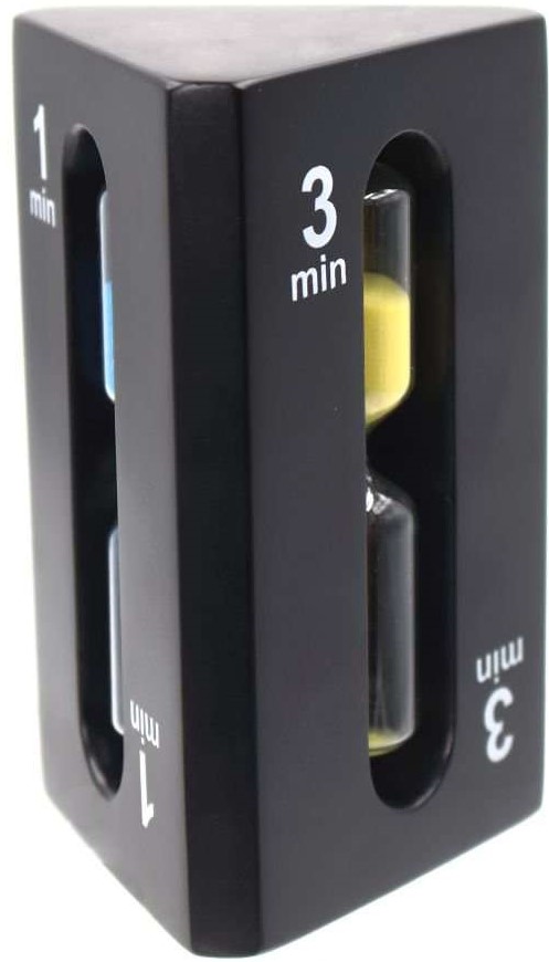 L'horloge en bois pour 3 minutes s'intégrera parfaitement dans n'importe quel intérieur. Pour augmenter la précision, du sable fin spécial a été sélectionné. Trois flacons de 1,3 et 5 minutes vous permettent d'utiliser le modèle dans diverses situations. Coût moyen : 2223 roubles.