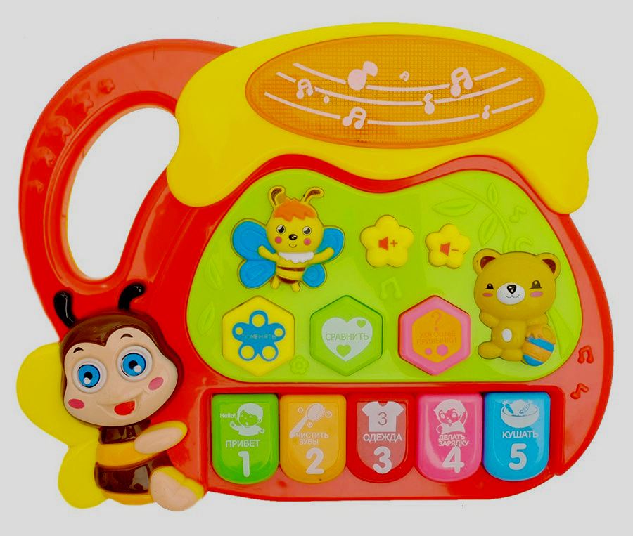 Une option idéale pour les enfants qui aiment les chansons sur les vers de M. Druzhinina et qui aiment les voix de différents animaux. Fonctionne avec trois piles AA. Appartient à la catégorie des nouveautés. Fabriqué à partir de plastique de qualité. La coloration est lumineuse. Dans la partie avant, il y a des touches et toutes sortes de boutons colorés. Lorsque vous cliquez dessus, le bébé entend des chansons amusantes. Vous pouvez configurer différents modes. Favorise le développement du toucher, de la mémoire, de la vision, de la motricité fine, de l'oreille musicale. Recommandé pour les enfants de plus de trois ans.
