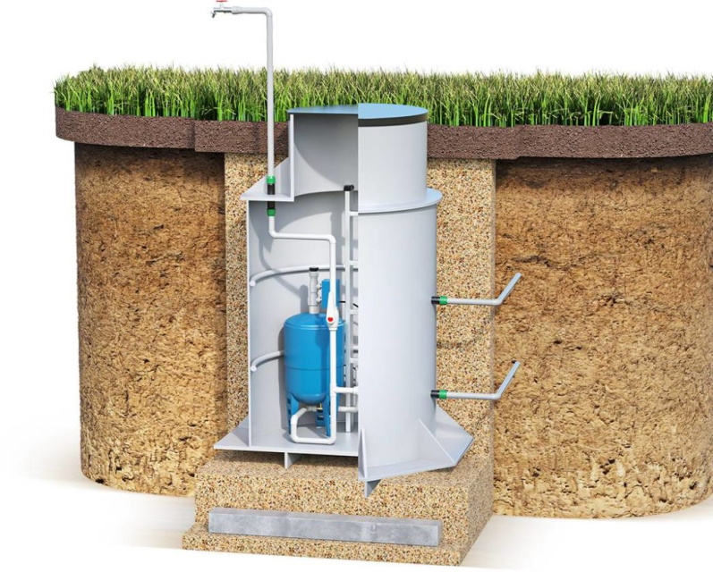 Pour faciliter l'entretien de l'équipement de pompage, il y a une échelle, des nervures supplémentaires et un manchon pour le tuyau à l'intérieur. La fixation du produit dans le sol et la prévention de la mobilité sont réalisées à l'aide de supports spéciaux.