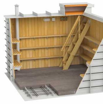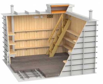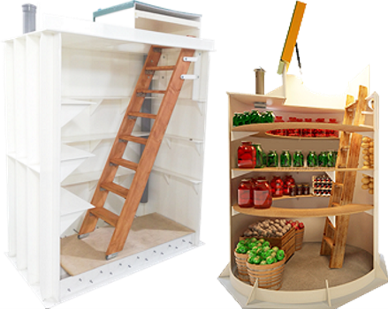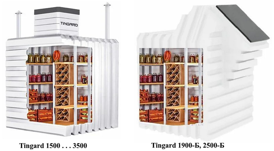 Une série de modèles de chambres hermétiques avec une forme innovante avec une structure sans soudure jusqu'à 15 m3 et une jupe de chargement pour le stockage des aliments, des cornichons et des légumes. Le produit complet peut être installé pendant la phase zéro de la construction ou à côté de la maison, dans un local technique ou un garage. Deux modifications sont produites, qui diffèrent par l'utilisation de différents matériaux pour le cadre interne :