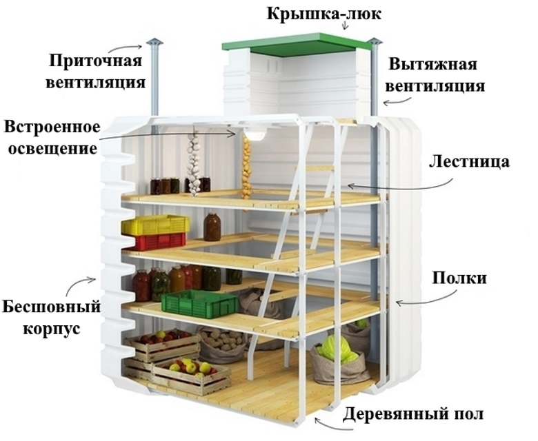 Une cave en plastique est un récipient scellé en polyéthylène ou en propylène de qualité alimentaire, qui maintient un microclimat confortable à l'intérieur à tout moment de l'année.