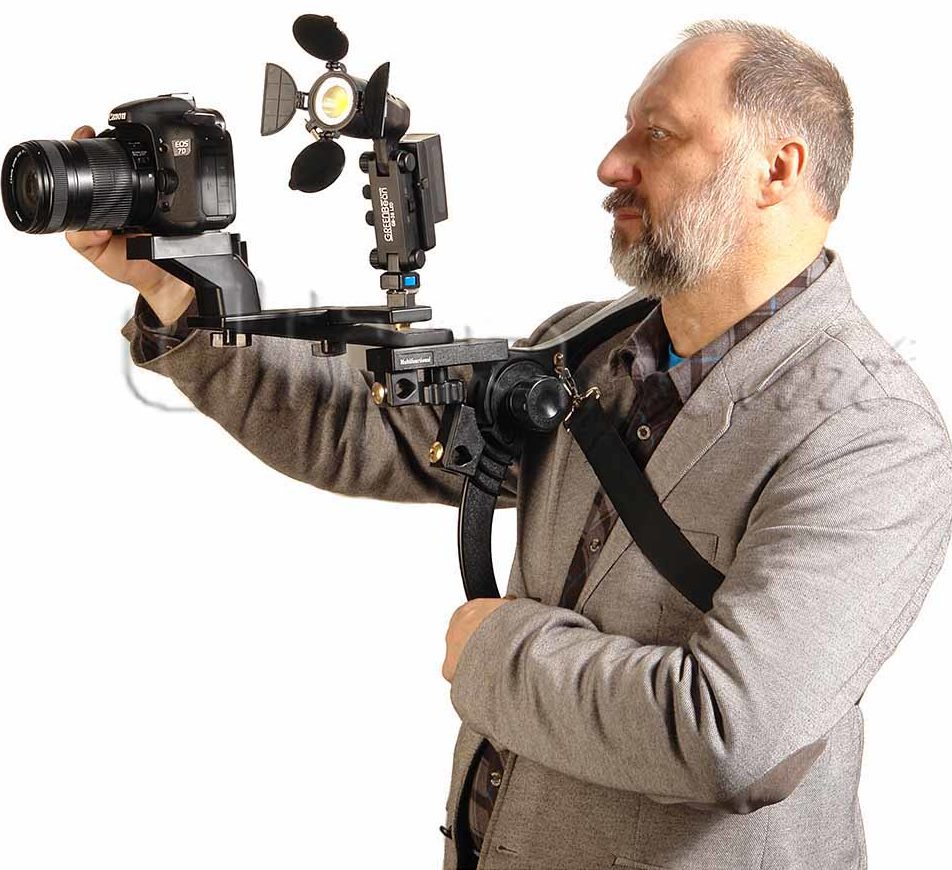 Compacte et légère, toute la structure, à l'exception de pièces telles que le rembourrage des épaules, le revêtement de la poignée et les bouchons, est en aluminium recouvert d'oxyde de haute qualité. Modèle de fabrication professionnelle adapté aux caméras DSLR et HDV. L'angle d'inclinaison et la position des poignées existantes peuvent être modifiés. La conception prévoit de nombreuses petites choses, grâce auxquelles le RIG03 deviendra un excellent assistant fiable pour l'opérateur. La surface caoutchoutée et les matériaux de haute qualité utilisés dans l'épaulière garantissent la fiabilité et la longue durée de vie de l'appareil.