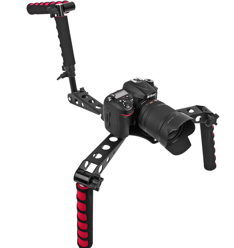 Lors de la création du modèle PWR DSLR, du plastique et du métal de haute qualité sont utilisés, ce qui rend la construction légère, mais en même temps assez durable. Malgré sa taille compacte, l'appareil vous permet de fixer fermement l'appareil photo pour le travail, ainsi que de soulager la charge sur vos mains lors de la prise de vue. La plate-forme réduit le bougé de l'appareil photo et secoue l'image lors de l'utilisation de l'appareil photo en déplacement. Le modèle vous permet de tirer à la fois de l'épaule et de l'angle inférieur, ainsi qu'au niveau de la poitrine ou du sol. Le PWR DSLR Rig a des poignées spécialement revêtues qui vous permettent de les tenir en toute sécurité pendant le fonctionnement et une vis de fixation qui vous permet de faire pivoter la poignée autour de l'axe.La conception est équipée de supports supplémentaires pour l'utilisation d'équipements supplémentaires et est compatible avec la plupart des appareils photo et caméscopes.