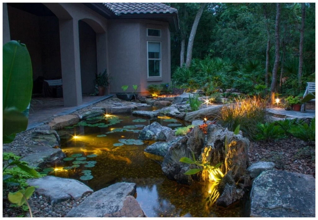 Les pierres, les petits arbres, les figurines ou les figurines conviennent à la décoration. Des éléments supplémentaires transforment un étang ordinaire en une zone de loisirs confortable. En fonction de la taille du site et du réservoir, il est complété par :