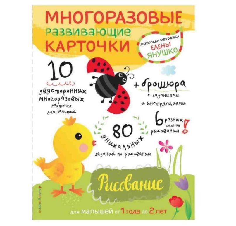 L'ensemble comprend dix cartes éducatives, fabriquées sur du carton spécialement traité, qui aident à stimuler la pensée créative. Les couleurs vives et les grands objets familiers dans les dessins attireront l'attention, et la possibilité de ramener les cartes à leur forme d'origine à plusieurs reprises avec une lingette humide ordinaire facilitera la vie des parents.