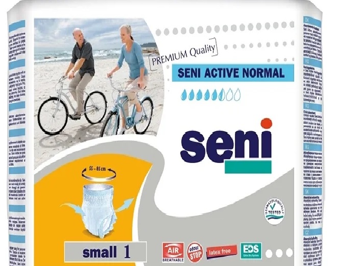 L'une des variétés de produits d'hygiène de cette société est le sous-vêtement absorbant Seni Active Normal. Protège contre les fuites en cas d'incontinence urinaire modérée. Bien adapté aux patients mobiles, car ils sont faciles à utiliser. Ils peuvent être enlevés et mis comme des sous-vêtements ordinaires. Option appropriée pour les femmes et les hommes. La couche supérieure est respirante, ce qui est important pour la protection contre l'érythème fessier, les éruptions cutanées. L'absorbant antibactérien absorbe les odeurs désagréables. Les fuites latérales sont exclues grâce à la présence de jupes latérales, des poignets élastiques sur les hanches vous permettent de tirer de manière optimale le short sur le corps. Il y a un indicateur de saturation en humidité.