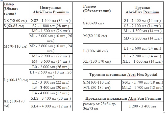 Le ruban à mesurer est posé à travers les points saillants de l'abdomen. Une caractéristique importante est la quantité d'humidité absorbée par le produit d'hygiène. Il est conseillé aux patients immobilisés d'acheter des couches avec une capacité d'absorption accrue. La même exigence doit être observée lors de l'achat de produits pour les personnes âgées qui sont physiquement actives mais qui n'ont pas la possibilité de changer leur couche fréquemment. Pour la nuit, vous devez également sélectionner des produits à absorption accrue.