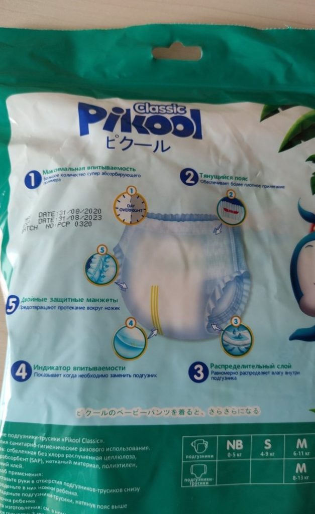La couche intérieure aérée permet à l'air de bien passer et protège contre les fuites même au niveau des jambes. De plus, les produits sont équipés d'un indicateur spécial qui avertit les parents de la nécessité de remplacer la culotte.