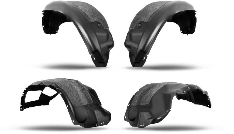 Un ensemble d'un analogue complet du produit original pour Mitsubishi Outlander, en plastique basse pression. Développement individuel pour un modèle spécifique. Sont implantés sur des places régulières en assurant la fermeture à 90% d'une arche. Un ensemble de quatre revêtements de passage de roue comprend le matériel assorti.