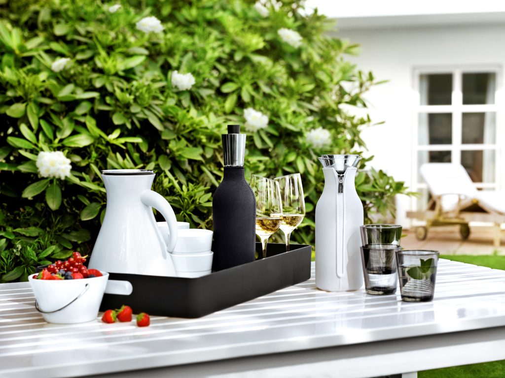 Les verres et les tasses ne glissent pas sur la surface caoutchoutée. Les côtés maintiennent fermement l'ensemble de vaisselle et les larges poignées aideront à faire face au lourd service en céramique. Le design minimaliste est orné d'un fin bord en acier, qui transforme un produit utilitaire en un détail intérieur moderne et à la mode.