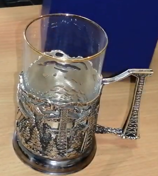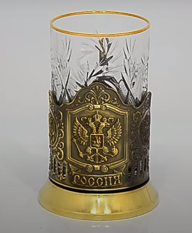 La deuxième place revient à un ensemble sophistiqué pour boire du thé, il comprend en standard : un support ; jolie cuillère; verre en crystal. Tous les éléments de l'ensemble sont traditionnellement mouchetés de multiples motifs, faits de matériaux très résistants, recouverts d'argent sur le dessus.