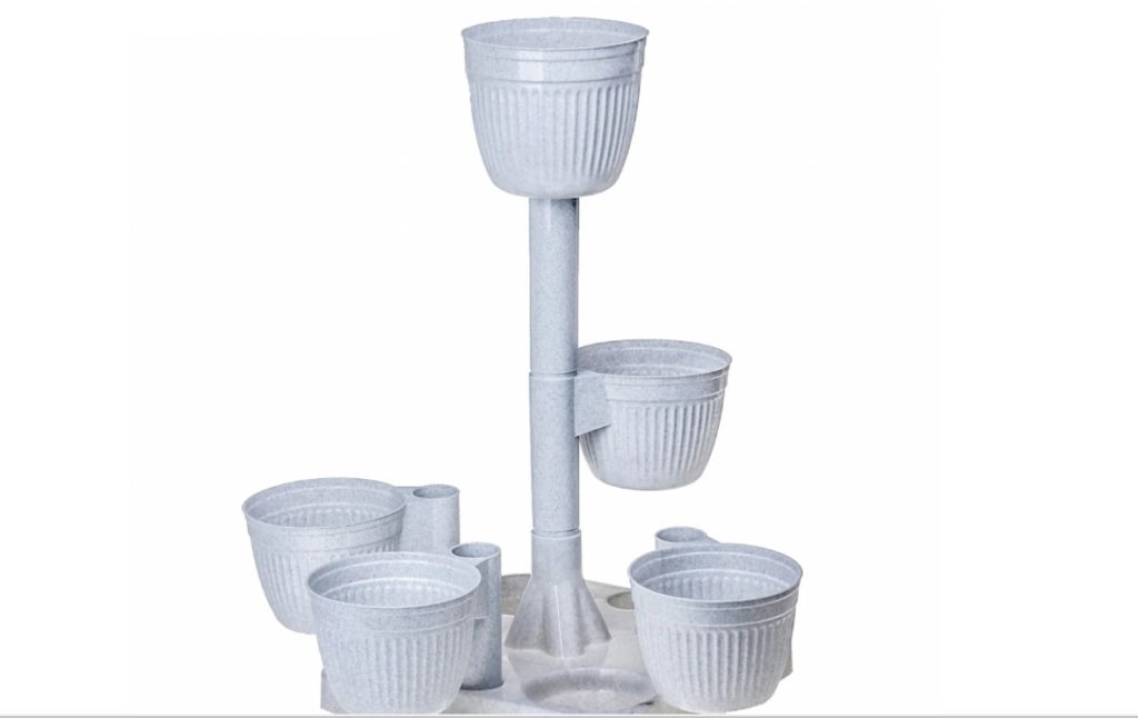 Une bibliothèque légère et pratique de fabrication russe ne prendra pas beaucoup de place et vous permettra en même temps de placer cinq pots à la fois. Une hauteur de 111,5 cm permettra aux brins amplifiés les plus longs de descendre librement, mais est également parfaite pour les fleurs dressées pas trop hautes. Les pots individuels sont facilement retirés et peuvent être déplacés n'importe où. Le plastique résistant aux chocs de haute qualité est facile à nettoyer et ne nécessite pas beaucoup de temps pour l'entretien. La taille de la base est de 35 par 35 cm.