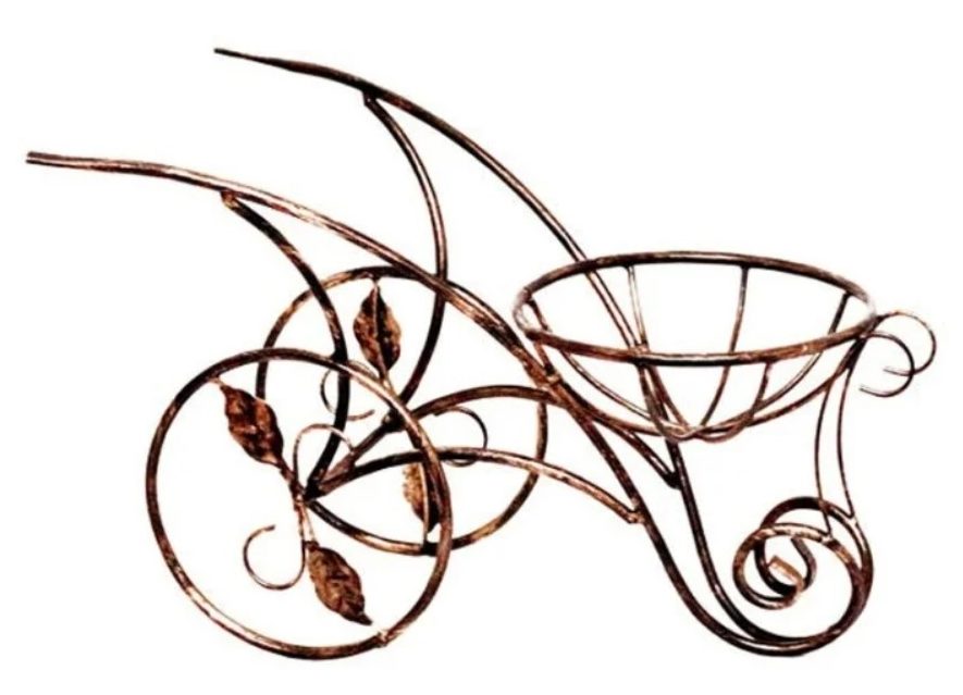 Contrairement au "vélo" du premier classement, ce support peut accueillir non pas un, mais plusieurs pots de fleurs avec des fleurs de différentes tailles à la fois. Un travail soigné soulignera le goût raffiné des propriétaires et donnera un charme unique à la pièce ou au jardin, car grâce à l'utilisation d'un revêtement de haute qualité, il n'est pas menacé de perte d'apparence due aux intempéries. Taille - 86 x 29 x 70 cm.