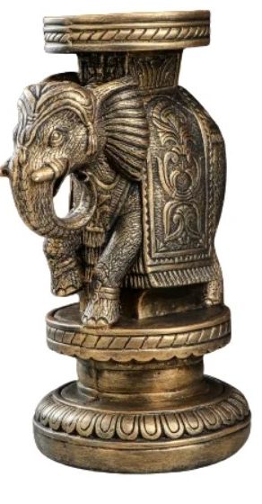 Le comptoir, fait de plâtre durable et recouvert d'une peinture de haute qualité, donnant une imitation extérieure complète du métal, ne s'intégrera dans aucune pièce, mais peut devenir un véritable bijou qui décorera une pièce de style indien ou africain. Son design unique en fait non seulement un élément de décor, mais un meuble à part entière. Taille du support - 22 x 17 cm, hauteur - 34 cm.