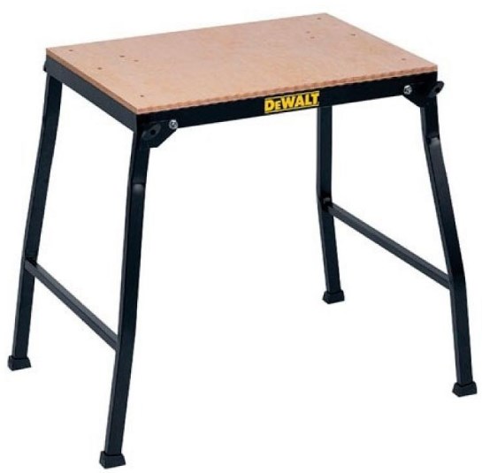 Support universel compact de la société américaine DeWalt. Convient à toutes les scies à onglet de la marque, ainsi qu'à d'autres fabricants. Le DE1000 est une petite table avec un plateau en bois interchangeable sur lequel l'instrument est fixé. L'appareil est petit: largeur - 62 cm, longueur - 82 cm, hauteur - 70,5 cm, il ira donc même dans un petit atelier. Malgré sa simplicité et sa petite taille, le modèle peut supporter jusqu'à 182 kg de charge.