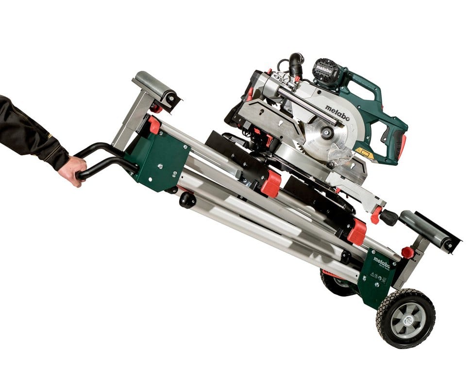 Le banc de scie à onglet KSU 401 de Metabo peut être appelé le frère aîné du modèle précédent.Ils sont identiques dans la conception et la fonction. La seule différence qui nous a amenés à inclure ce support dans la note est sa longueur. Grâce à des supports rétractables, il se déplie jusqu'à 4 mètres.