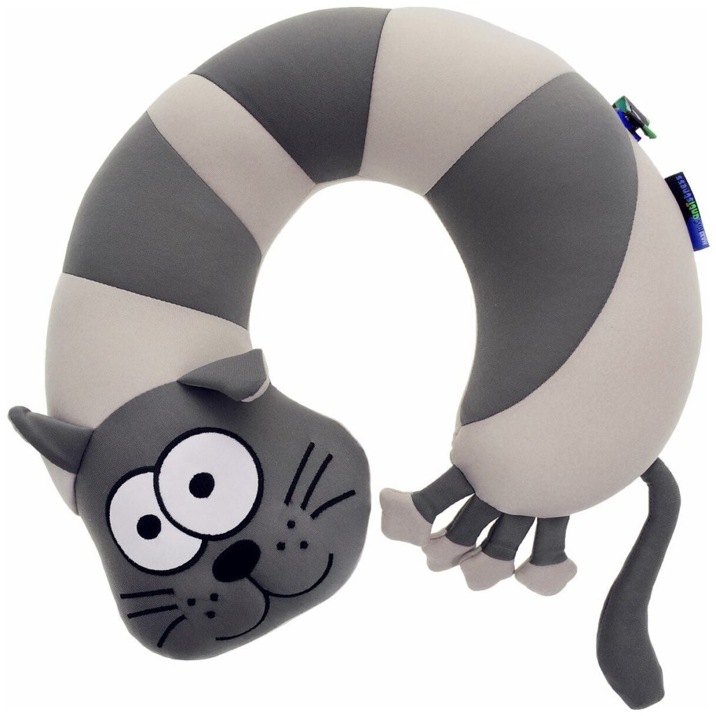 Le modèle sous forme de jouet sera une solution idéale pour un enfant. Le produit a la forme d'un chat, il vous permet non seulement de vous installer confortablement sur la route, mais aussi de vous remonter le moral. Le mastic polyester en mousse ne provoque pas de réactions allergiques et un polymère durable durera. La coloration discrète convient aussi bien aux garçons qu'aux filles.