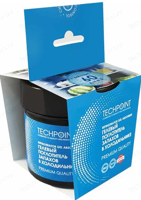 La préparation contient des granulés de charbon actif, qui résistent à toutes les odeurs persistantes, telles que : fromage, poisson, ail et oignons. Ils sont placés dans un récipient carré de drainage en plastique bleu.