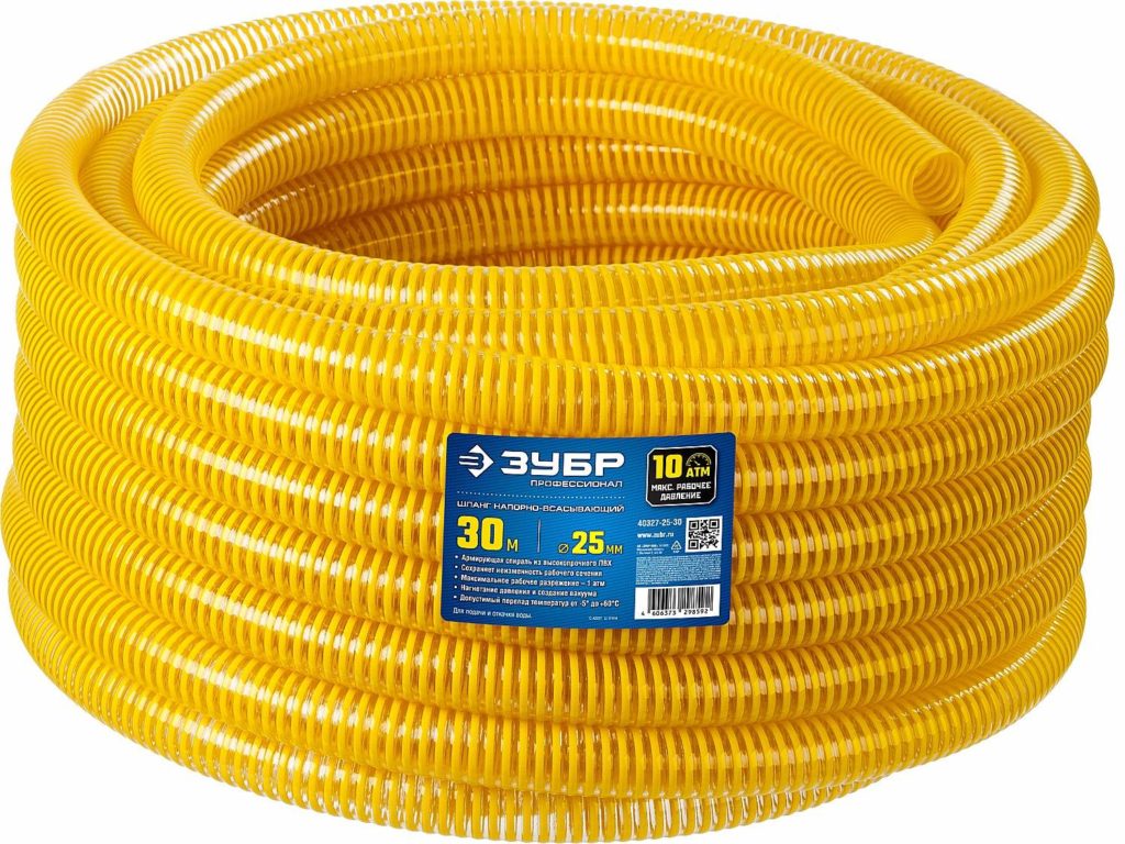 Pour les tuyaux renforcés, des fils polymères ou renforcés sont soudés dans les parois. Cette approche améliore la résistance à l'usure et la capacité à résister aux hautes pressions. La résistance au gel augmente avec le poids. Une excellente option pour le fonctionnement dans une alimentation en eau stationnaire d'été, à condition qu'elle soit étirée sur tout le site.