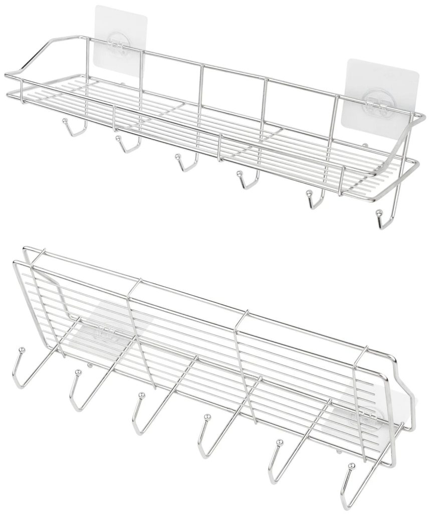 Une mezzanine de salle de bain spacieuse avec des crochets pour les serviettes est un excellent choix pour bien décorer la pièce. L'option convient également à la cuisine ou à la salle de douche. Le produit est compact et conviendra même dans une petite salle de bain d'un appartement citadin. Vous pouvez y installer non seulement des gels et des shampooings, mais également accrocher un peignoir ou une serviette. L'étagère est traitée avec une imprégnation spéciale qui rend l'acier inoxydable résistant à l'évaporation de l'humidité et minimise l'apparition de rouille.