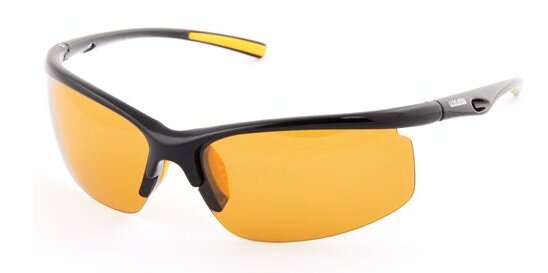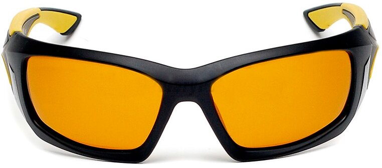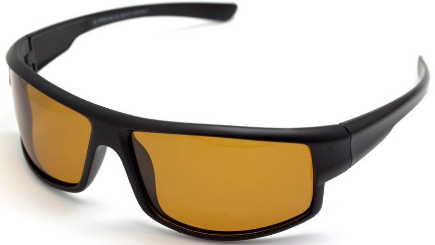 Monture noire monobloc classique, verres jaunes (polarisés). Matériel - plastique. Les branches arrondies sont pliables. À l'intérieur - informations sur la fonctionnalité (C3, Cat.1). Il y a une butée de nez fixe intégrée.