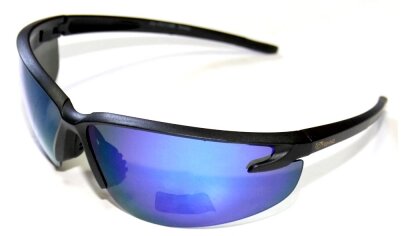 Caractéristiques des verres : polycarbonate, forme sphérique (base 8), il y a une couche miroir.